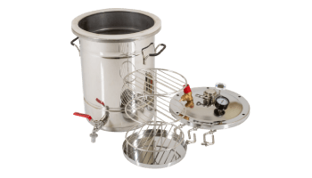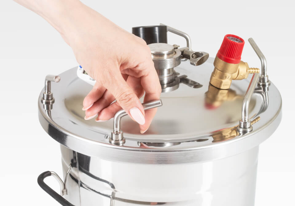 1,5-дюймовый кламп позволяет превратить автоклав в самогонный аппарат.