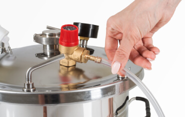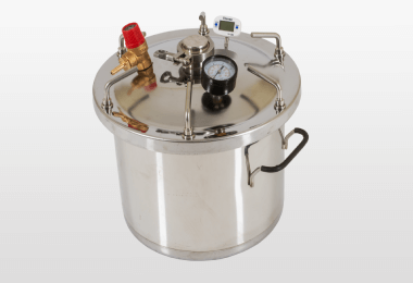 Механические термометр и манометр на крышке автоклава дают контроль над температурой и давлением внутри.
